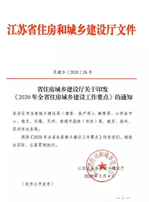 江蘇省住房和城鄉建設廳關于印發《2020全省住房和城鄉建設工作要點》的通知,其中明確提到: