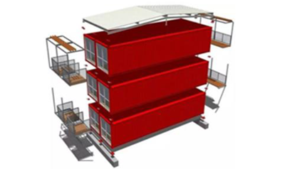 模塊化建筑即將傳統房屋以單個房間或一定的三維建筑空間為建筑模塊單元進行劃分,并在工廠對模塊單元樓板、天花板、墻體進行提前預制安裝,完成后將這些建筑模塊單元輸至現場,使用起重裝備像“搭建積木”一樣將其堆疊、連接在一起,組成一個完整的建筑。
