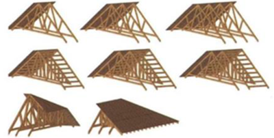 預制梁柱式構件與木桁架:裝配式木結構建筑中最靈活的組件,需要在現場進行二次加工。木桁架是指由木構件組成的桁架,是木屋蓋、木塔架的主要承重結構。
